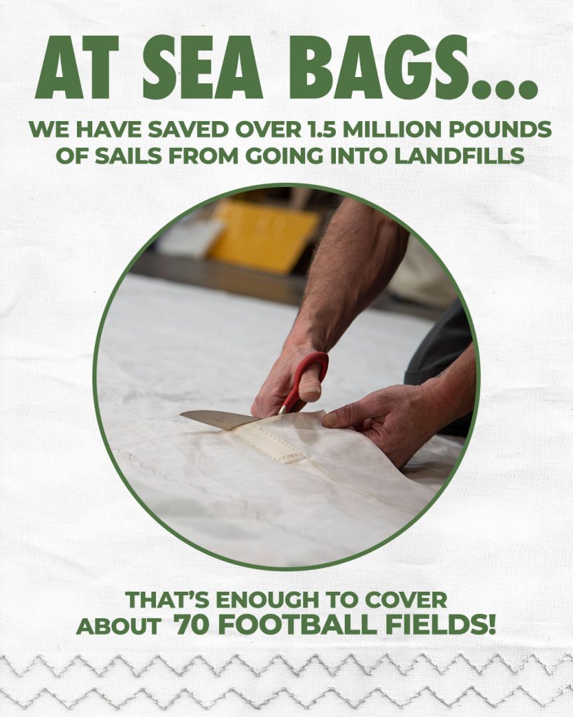 We repurpose sail cloth to reduce landfill waste, promote a more sustainable future and delight customers with durable, made in the USA products. We support our community by creating jobs, sourcing materials locally, and contributing to causes that make a positive impact, ensuring that every Sea Bag serves a greater purpose.
